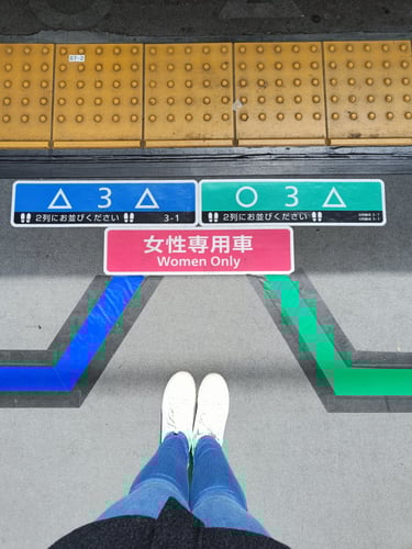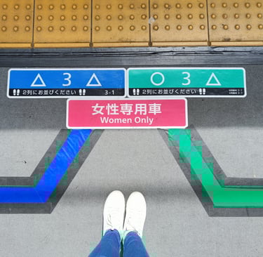 Durante las horas pico, verás un vagón marcado con señales rosas y kanjis misteriosos. Es el vagón exclusivo para mujeres (y sí, hay multitudes que lo agradecen). Si eres mujer, aprovéchalo. Si no, ¡ni se te ocurra entrar! Hay horarios específicos y lo toman muy en serio.