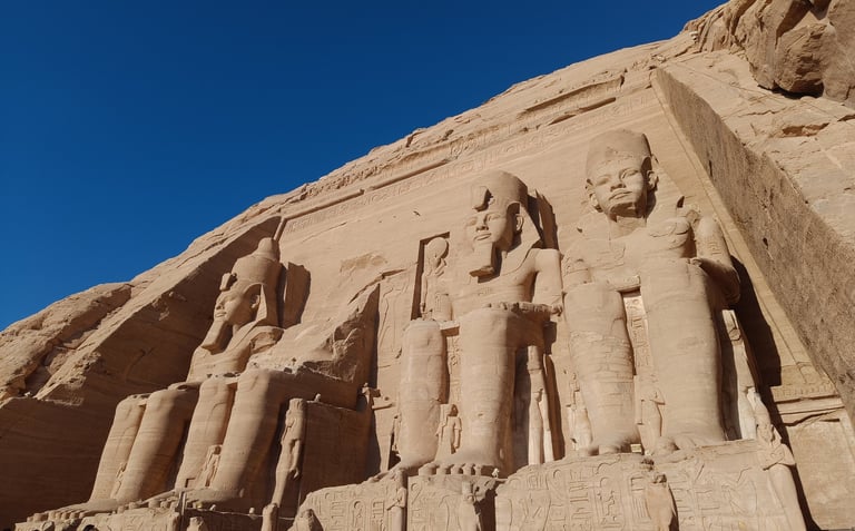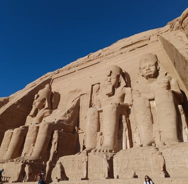El templo de Abu Simbel es uno de los tesoros más impresionantes de Egipto. Tallado en la roca a orillas del lago Nasser, su fachada con las colosales estatuas de Ramsés II deja sin aliento a cualquiera que se acerca. En el interior, los muros narran las victorias y la grandeza del faraón, mientras la luz del sol, en dos fechas exactas del año, ilumina sus estatuas sagradas. Visitar Abu Simbel es contemplar no solo la majestuosidad del antiguo Egipto, sino también el ingenio humano que logró preservar este templo único de las aguas.