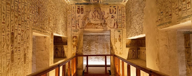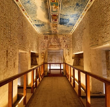 El Valle de los Reyes es un viaje al corazón del antiguo Egipto. Entre montañas áridas y silenciosas se esconden las tumbas de faraones que gobernaron hace más de 3.000 años. Cada cámara funeraria, decorada con relieves y colores sorprendentes, guarda historias de poder, creencias y eternidad. Caminar por este lugar sagrado es sentir la grandeza y el misterio de una civilización que aún hoy nos maravilla.