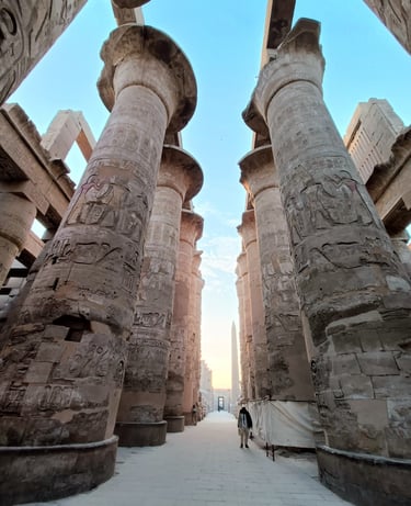 En Luxor, la historia cobra vida entre columnas gigantes y muros cubiertos de jeroglíficos. El Templo de Luxor, iluminado al caer la tarde, invita a imaginar las procesiones que recorrían su avenida de esfinges. A pocos kilómetros, el imponente complejo de Karnak deslumbra con su sala hipóstila, un bosque de columnas que parece no tener fin. Ambos templos son testigos eternos del poder y la espiritualidad del antiguo Egipto, y pasear por ellos es como viajar miles de años atrás.
