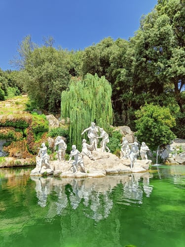 El Palacio de Caserta es como un gigantesco escenario de historia y arte: enormes salones, jardines interminables y fuentes que te dejan boquiabierto. Visitarlo es perderse entre la grandeza barroca y sentirte parte de la realeza por un día.