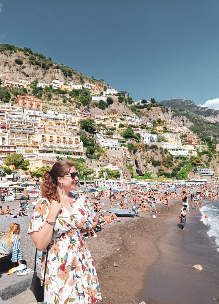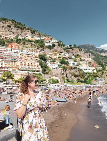 La playa de Spiaggia Grande es ideal para tomar el sol y admirar la famosa postal de Positano.Sube a vistas panorámicas 🌄