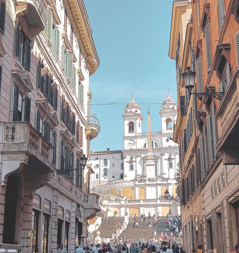 Siguiente parada: la Plaza de España, con su icónica escalinata que sube hacia la iglesia de Trinità dei Monti. Esta zona es perfecta para descansar, ver pasar gente y disfrutar del aire romano. Es uno de esos lugares que siempre tienen algo pasando.