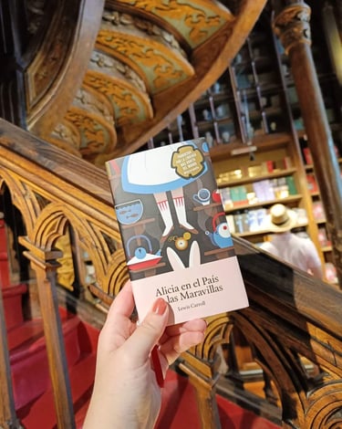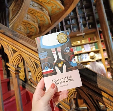 Pero si hay un lugar que me hizo sentir dentro de un cuento, fue la Librería Lello. Dicen que es una de las más bonitas del mundo, y no cuesta creerlo. Entrar allí es como entrar en un sueño: las escaleras rojas que parecen flotar, los vitrales de colores, el olor a madera y a papel antiguo… Todo tiene algo mágico. Entre sus estanterías encontré una joya: una edición preciosa de Alicia en el País de las Maravillas. No pude resistirme a llevarla conmigo, como recuerdo de un lugar que parece tener la misma esencia de ese libro: un espacio donde la realidad y la fantasía se mezclan.
